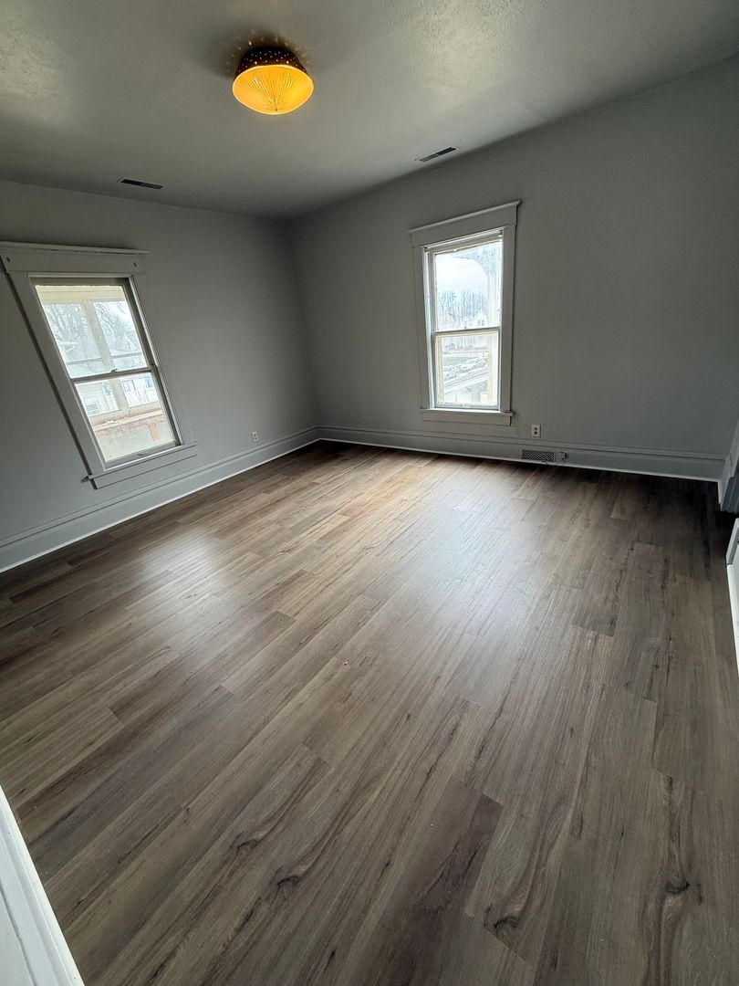 Upstairs unit 2 bedroom one bathroom apartment for rent. This apartment features new vinyl plank throughout the entire apartment! Pets are allowed with an additional deposit and monthly fee per pet.